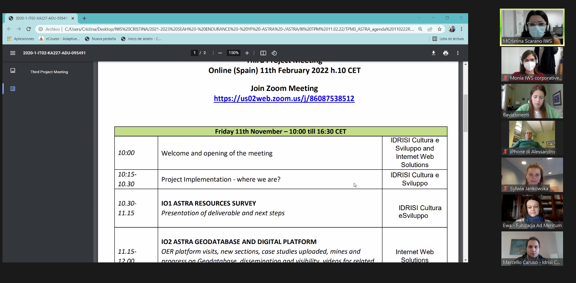Terzo incontro di progetto, tenutosi ad inizio Febbraio fra i partner sull’andamento del progetto ASTRA : piattaforme, analisi andamento e altro…