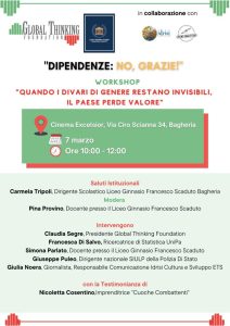 Idrisi Cultura e Sviluppo ETS condivide il Workshop “Quando i divari di genere restano invisibili, il paese perde valore”, che si terrà Martedì 07/03/2023 dalle ore 10:00 alle ore 12:00 presso il Cinema Excelsior, via Ciro Scianna 34, Bagheria.